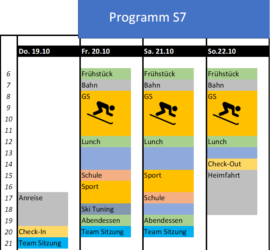 Hallo Zusammen   Für das Skitraining vom nächsten Wochenende müsst ihr nur die Riesenslalom-Skis mitnehmen. Ebenfalls noch 18.- pro Tag für das Mittagessen.   Damit ich mit den Athleten die persönlichen Konditrainings besprechen kann, brauche ich von gewissen noch folgende Konditagebücher: Jonah: August bis September Jarno: Juli bis September Sebastian: […]